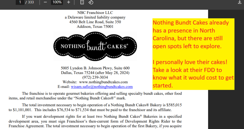 Everyone loves good cake, and it’s at the top of my list of the best franchise opportunities in North Carolina. First of all… Great margins!